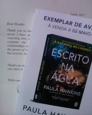Recebi na passada sexta-feira o exemplar de avanço do novo livro da Paula Hawkins, Escrito na Água. Como mimo extra, ainda veio uma carta da autora a agradecer por ler antecipadamente o seu livro. Surpresas boas! Obrigada à Topseller por este privilégio.